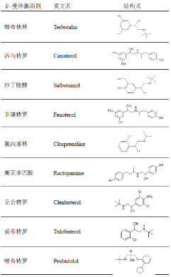特布他林、西馬特羅、沙丁胺醇、非諾特羅、氯丙那林、萊克多巴胺、克侖特羅、妥布特羅和噴布特羅等9種β-受體激動(dòng)劑信息如表所示。
